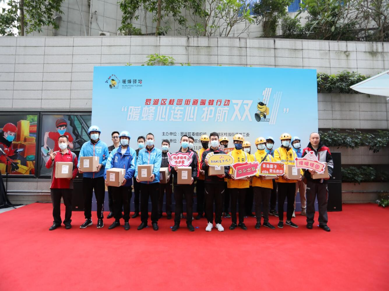 11月11日上午,为深入推进新兴领域党建工作,保障辖区快递物流行业在“双11”期间的稳定运行,罗湖区委组织部和桂园街道党工委以服务为导向,在京基100暖蜂驿站开展了“暖蜂心连心护航双十一”爱心送暖活动,为坚守奋战在一线的快递小哥外卖小哥送上暖心服务,表示慰问与关怀。桂园街道党工委书记刘楚文、罗湖区党建调研宣教中心主任周宙、桂园街道党工委委员陈国龙、顺丰速运有限公司桂园营业部负责人陈军和辖区快递物流行业的20余名快递小哥外卖小哥参加了这次活动。