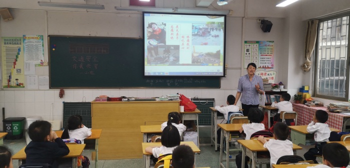 为了增强孩子的交通法律意识,预防和减少涉及孩子的交通事故,班会课还进行了猜谜语、抢答题、朗读等活动,通过活动,让同学们在亲身体验中认识了各种各样的交通信号灯及道路标志和日常交通知识。