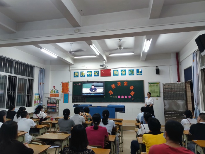 首先,家长和老师集中到课室观看了刘伟胜校长讲话。刘校长针对小学阶段孩子成长表现的问题开出了药方。要求家长鼓励孩子独立完成事情,拥有成就感,建立自信;让孩子学会等待,学会控制情绪;培养孩子的责任感和持之以恒的品质。他还就关于国庆节期间安全进行了安全知识宣讲,强调了国庆节期间安全出游的一些要点。