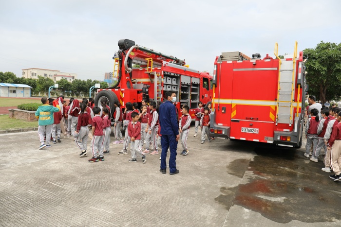 接着,三乡消防大队队员向全体师生讲解和示范灭火器的使用步骤,并请部分师生代表上前操作,让师生掌握了灭火器的使用方法。随后,组织师生参观消防车,提高了师生对消防器材的了解。本次消防演练活动的开展,强化了师生的消防安全意识。