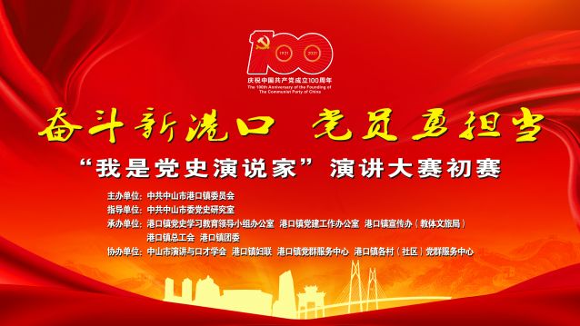 今年是中国共产党成立100周年,为回顾党的奋斗历史,讴歌党的光辉业绩,进一步弘扬党的优良传统和作风,同时,为继续坚持新时代中国特色社会主义文化发展道路,展现港口镇发展新面貌,助推乡村振兴、为重振中山虎威而凝心聚力,港口镇党委在全镇举办“奋斗新港口 党员勇担当”——“我是党史演说家”演讲大赛。