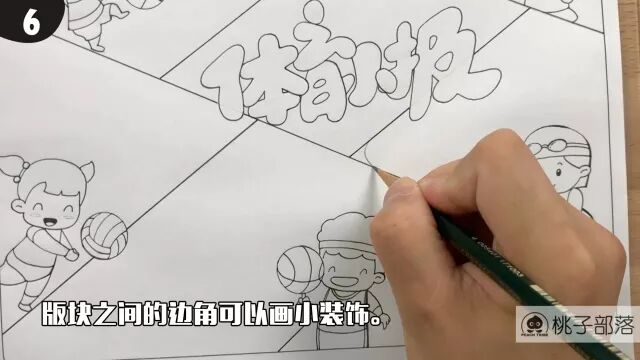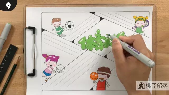 体育小报一枚,这期的排版比较新颖,也可做成暑期小报,按照内容版块去变形! 01 可以使用的画具     起稿:铅笔     勾线:针管笔     上色:马克笔     用纸:彩铅纸、马克笔纸 02 绘画技巧        这一期手抄报的版块我有较大的调整,让整个版面更加具有运动的流动性。版面之间的穿插,倾斜让画面更加有动感!难点就是画小孩子运动的图,大家一定要先把铅笔稿画好,再用针管笔去勾线! 小提示        小伙伴们,桃子部落的在线课程正式发布了,想跟着老师从零基础开始学习绘画的学员,可以扫描下面的二维码。        如果大家对画具有需求,也可以去桃子时光微店或淘宝店铺选购,谢谢你们的支持!记得点赞和转发哦~~~ 美好的一天从绘画开始 QQ:449836144 简笔画|卡通画|手账|手抄报 长按二维码关注 点击“阅读原文”进入在线课程                                        桃子部落