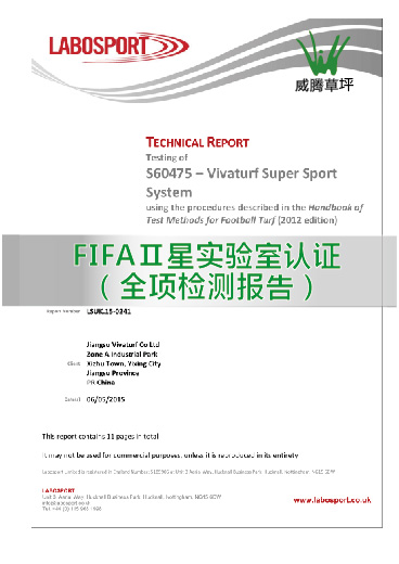 另外,所有人造草坪,只有在实验室测试并达到国际足联认证要求指标的才能获得FIFA认证1星和FIFA认证2星;并且,一星认证的人造草坪有效期为三年,而二星认证的人造草坪场地需一年以后重新测试检测,若是在规定时间内不符合检测准则,则自动将为1星认证。