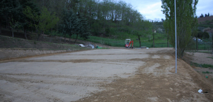 ◆放线(测量),找出场地的中心点和两个半圆圆心,并根据此三个定位点放尺拉线,定出场地中线和边线交点,然后以勾股定理定出场地上各角点、线的准确位置,进而定出各功能点、线的位置;并用墨线或漆线弹出。