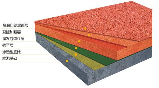 厚度只有2mm,而EPDM面层有3mm,这样要做13mm足厚的全塑型,自结纹跑道底层就要多做1mm的纯PU层,按设计标准来算,起1mm厚度