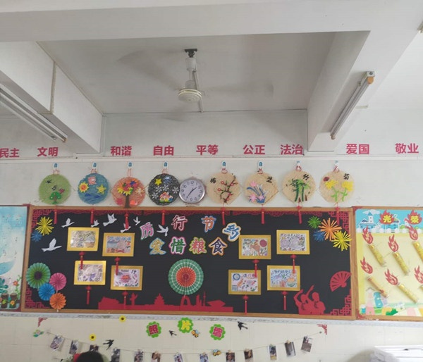 新学期伊始,该校班主任和全体学生对教室班级文化进行精心设计与文化布置。该校各班制定了富有特色的班风、班训、班主任寄语等,根据实际还增设了一些有特色的栏目。比如,公告栏、时事栏、诵读栏、手抄报等。把“美”的教育渗透在班级文化的各个方面:在墙面上还设置了“小小书法家”“小小画家”、“每周一星”“我真棒”、“学习园地”等区域,做到了让“每一堵墙”成为“无声的导师”。通过一轮的评比,每个年级都评出了一个一等奖、两个二等奖和若干个三等奖。最后把文化凸显的三个优秀班级参加区级特色班级评选候选:分别是六(4)班、六(2)班和二(1)班。