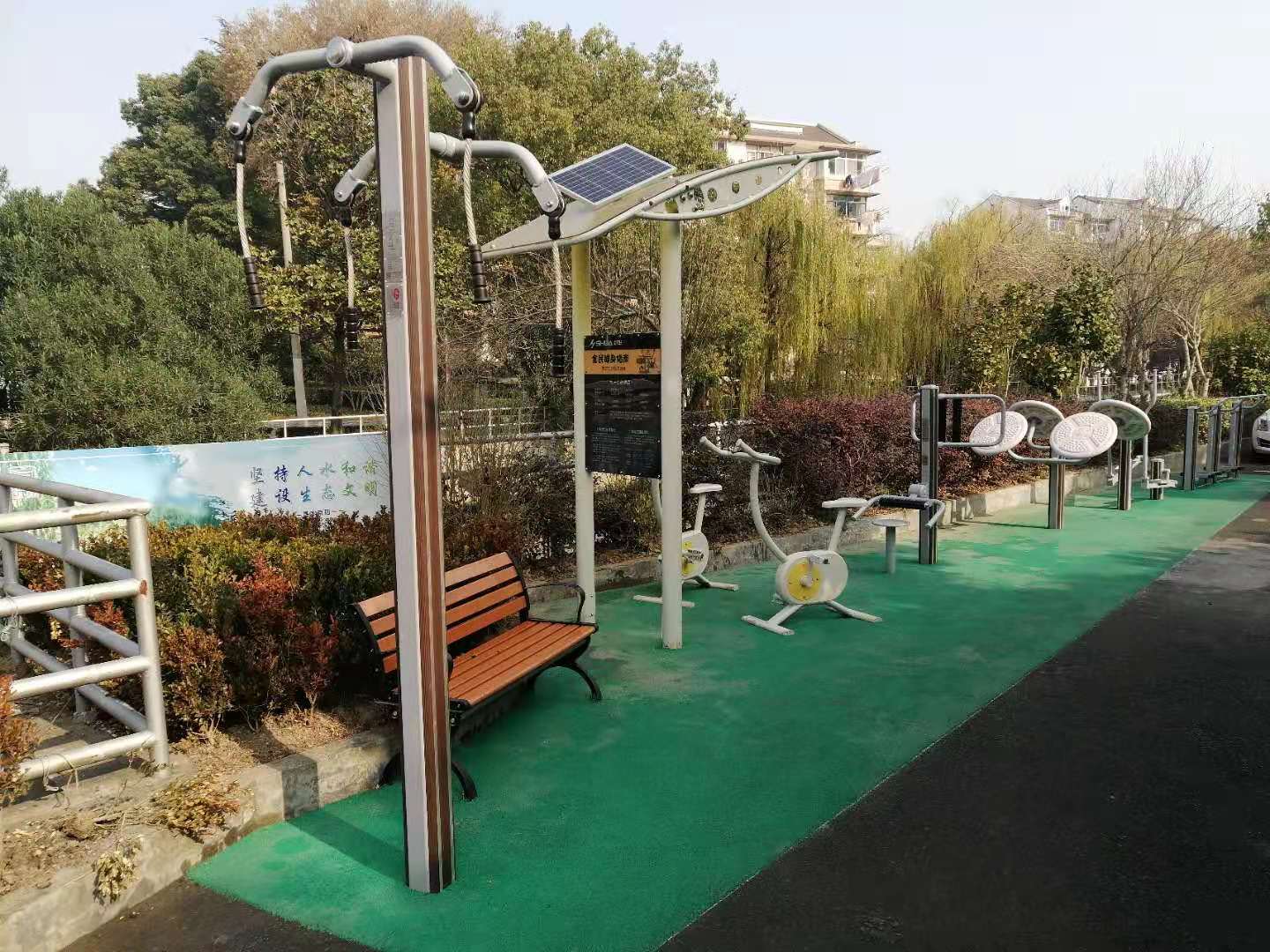 该场地有如下几套健身设施,欢迎使用.科佳居委健身苑由【南方体育工程】整理发布,广东中山南方体育设施工程有限公司(电话:0760-86320799,手机:13726017833 微信同号)主要生产施工各类型的塑胶跑道,是一家体育场地设施工程专业承包商,服务范围涵盖珠三角(广州、佛山、肇庆、东莞、惠州、珠海、中山、江门、深圳),并服务于国家大湾区建设,主要项目产品有:塑胶跑道,硅PU球场,聚氨酯球场,丙烯酸球场,EPDM弹性地面,悬浮塑胶运动地板,PVC运动地板,人造草坪足球场,体育器材,健身路径,并对广东全省的原有体育场馆设施成立了维修保养中心,是广大机关单位、团体、中小学的体育场馆设施维护的定点单位.