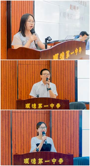 来自顺德一中的青年学科教师代表赵明月、容桂外国语学校的青年班主任代表胡加强、均安南沙小学的青年教育管理者陈靖雯作为代表分别作了发言。青年学科教师代表――顺德一中的赵明月以“教学相长、以研促教”为主题,讲述了在顺德教育高质量发展历程中的个人专业成长过程。她立志成为有理想信念、有道德情操、有扎实学识、有仁爱之心的新时代好老师。青年班主任代表――容桂外国语学校的胡加强认为做班主任需要接地气、书香气、志气和信仰,最后,他代表本届所有的青年班主任们承诺:我们将学无止境,用我们的良心、爱心、耐心和细心去浇灌祖国的花朵,为顺德教育的发展尽一份微薄之力。青年教育管理者代表――均安南沙小学的陈靖雯用“感谢、自豪和拼搏”三个词高度概括了她的感受,表达了对区镇领导的感激之情,讲述了她曾经在西藏支教的不平凡经历,立志弘扬顺德人敢为人先的精神,坚守顺德的教育事业。