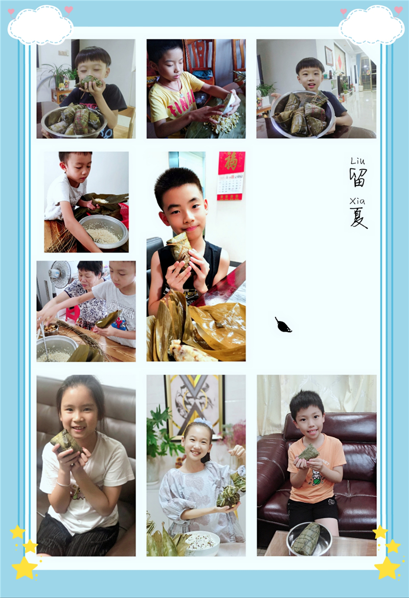 周末,以“我向长辈学一技”为主题,同学们回家向长辈学习粽子的各种制法。自己动手制作粽子,感受着民俗文化,亲身体验自己的劳动成果和端午习俗。