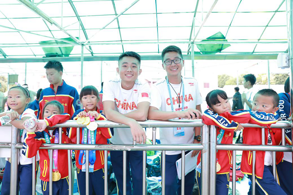 热烈祝贺伦教街道参加佛山市顺德区第十二届运动会游泳比赛荣获52枚金牌,34枚银牌,12枚铜牌,以1655分的最高得分荣获团体总分第一名的优异成绩!本次比赛北海小学共派出30名同学代表伦教街道出战。其中陈韵希同学,周元泰同学,梁子楠同学荣获“优秀运动员”称号,田涛老师荣获“顺德区优秀教练员”称号。