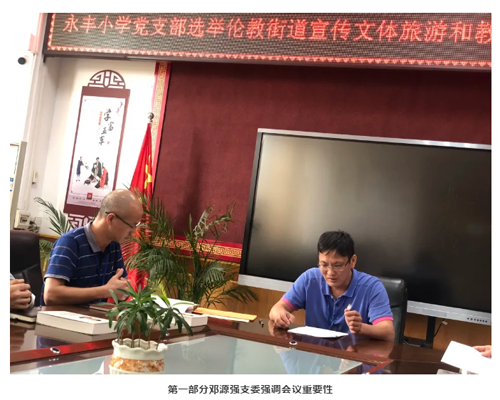 根据街道党建工作安排,伦教街道宣传文体旅游和教育线永丰小学党支部于10月23日中午在会议室举行伦教街道宣传文体旅游和教育线党委党代表选举和“两推”工作会议。出席会议的有我校党支部的党员和驻我校支部的伦教街道宣传文体旅游和教育线支部成员刘鹏。